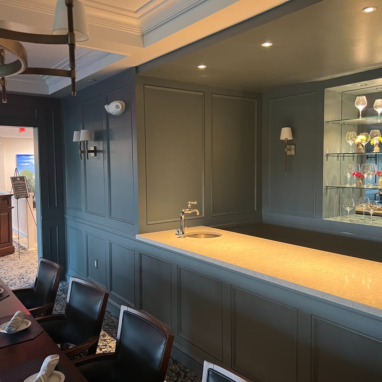 Coffered Ceilings, Wall Panels, and the Construction & Installation of the Bar