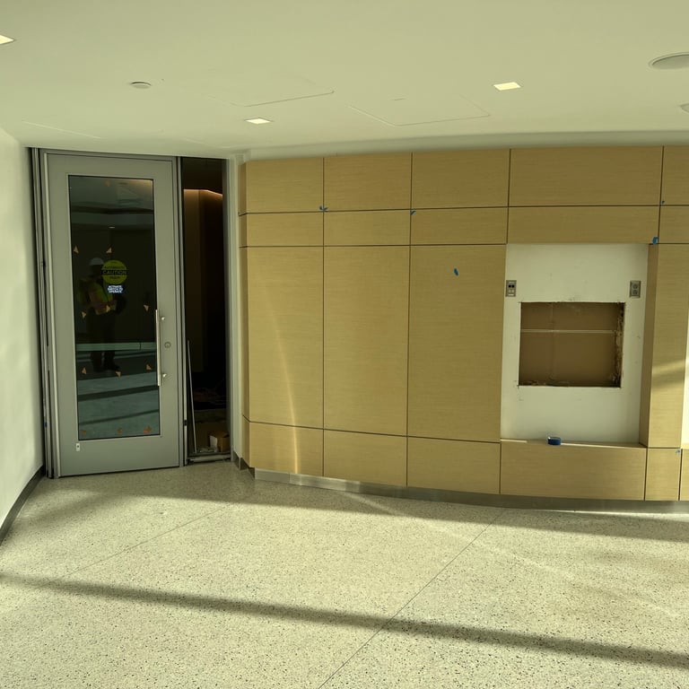 We specialize in the installation of doors, frames, and hardware, millwork, casework (wood wall panels), standing